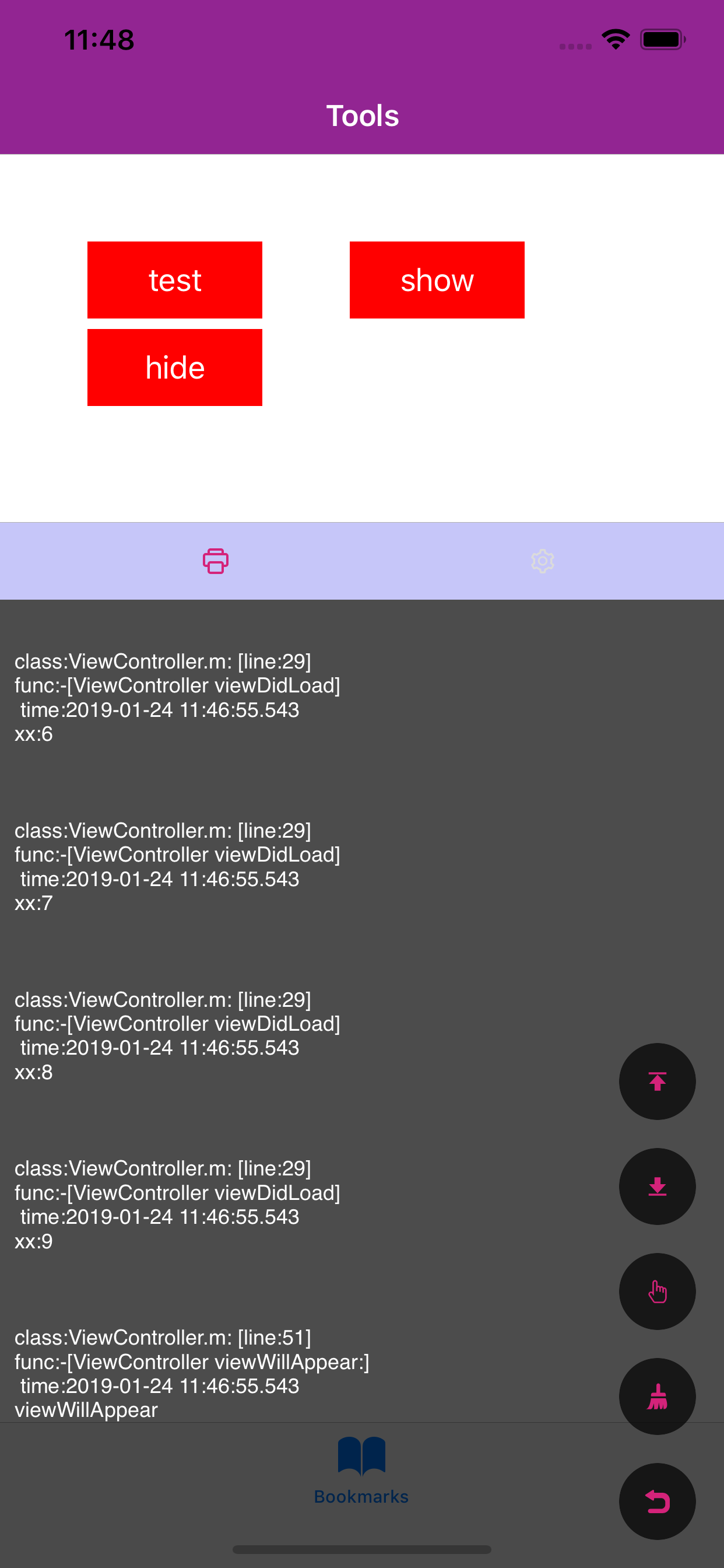 这个小工具是为了给测试或者开发人员在测试环境对某些bug进行实时反馈的小工具。比如某个接口挂了,那我们在没有联调xcode的情况下,是无知道具体的接口及错误信息。